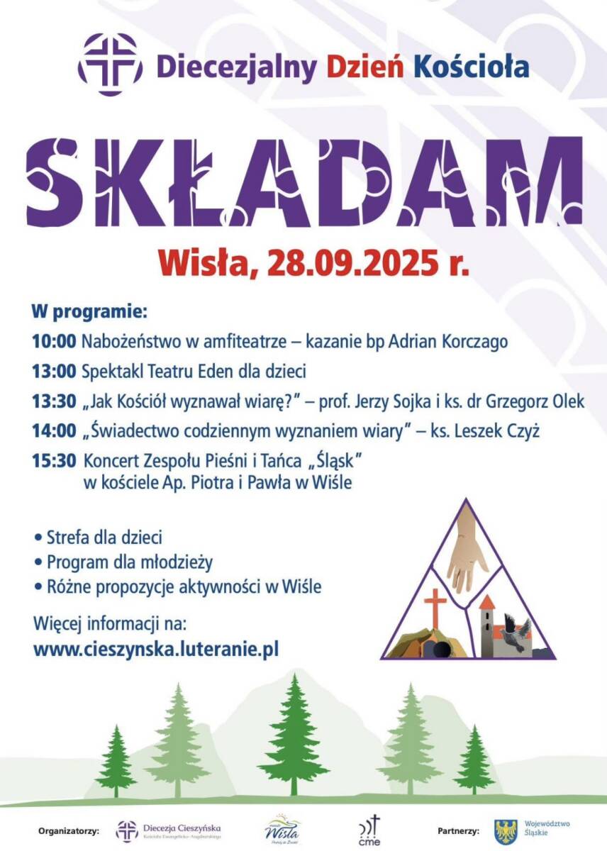 Serdecznie zapraszamy na Diecezjalny Dzień Kościoła w Wiśle w niedzielę 28 września, który rozpocznie się nabożeństwem w amfiteatrze o godz. 10:00.