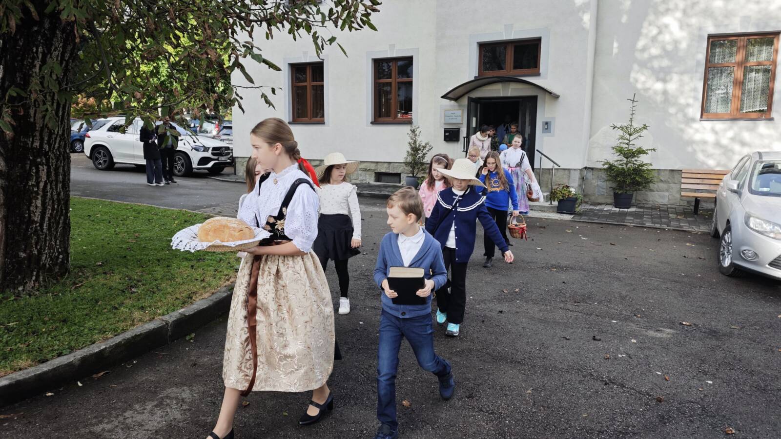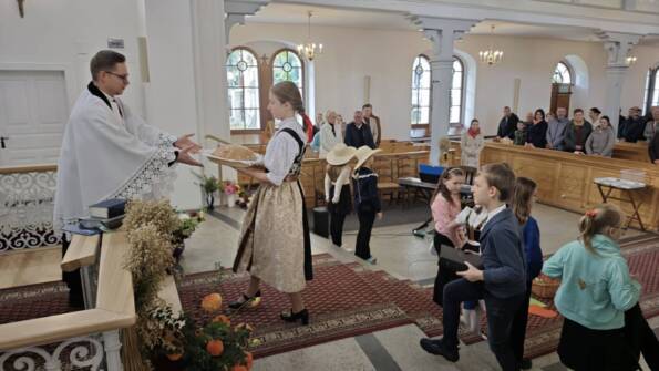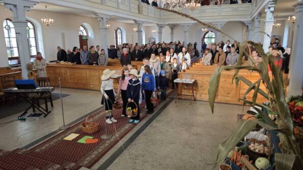 W Goleszowie i Lesznej Górnej odbyły się nabożeństwa komunijne z okazji Dziękczynnego Święta Żniw. W Goleszowie nabożeństwo połączone było z przygotowanym przez chór dziecięcy „Promyki” krótkim programem, a także śpiewem Chóru mieszanego. Słowo Boże zwiastował ks. Piotr Sztwiertnia. Po nabożeństwie zborownicy otrzymali w prezencie chlebki, a także mogli poczęstować się kromkami chleba ze smalcem i ogórkiem.