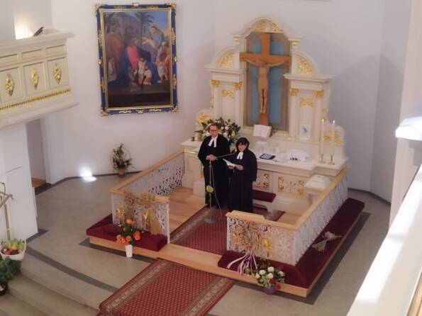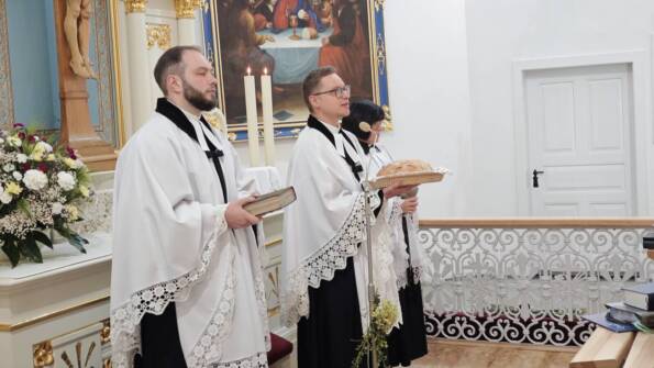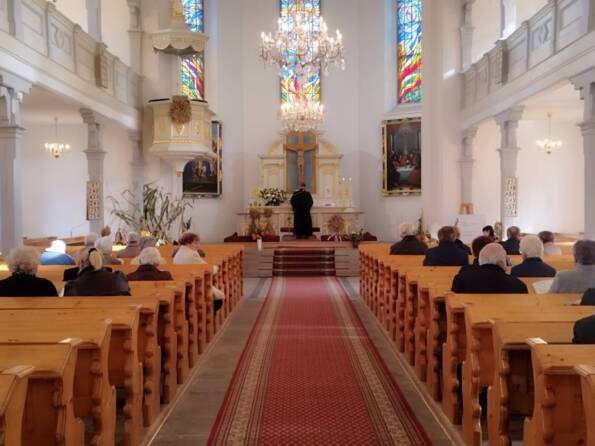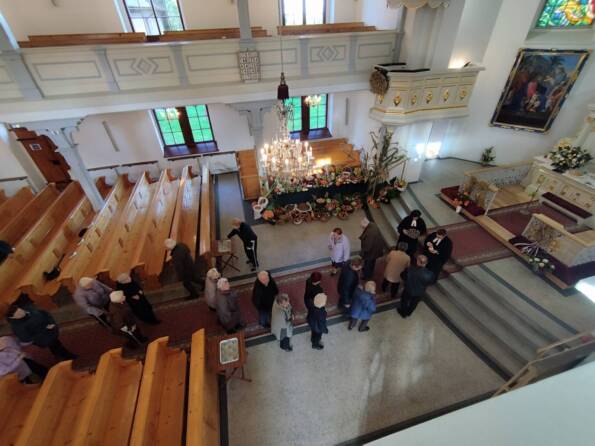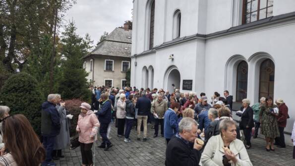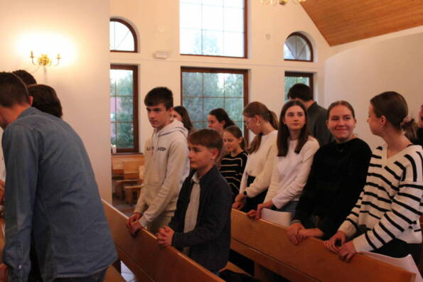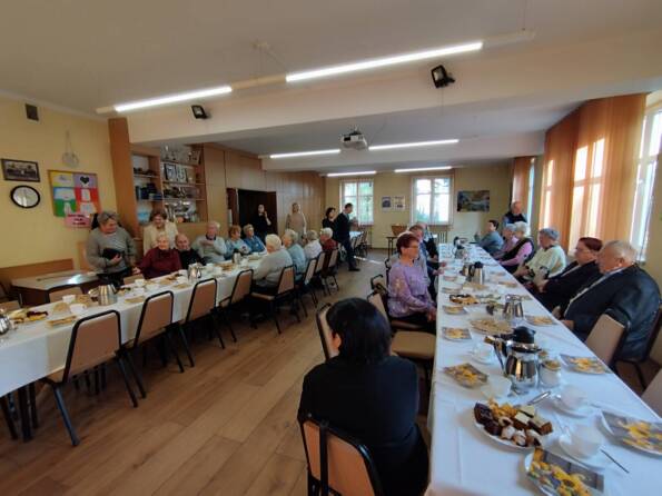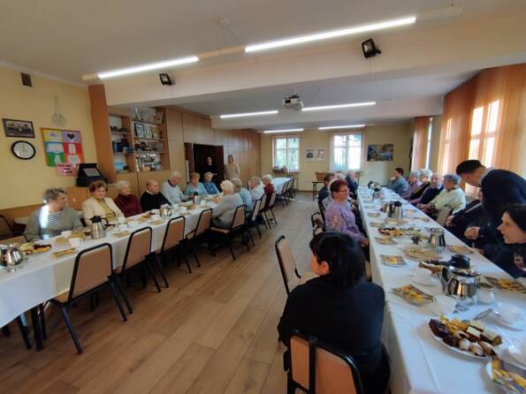 Po południu w Goleszowie w gronie starszych parafian przeżywaliśmy dedykowane dla nich nabożeństwo komunijne, by następnie spotkać się w sali parafialnej na poczęstunku.