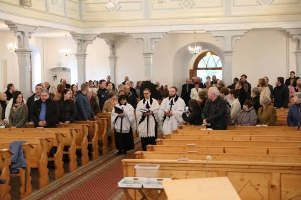 Chórzyści weszli do kościoła z pieśnią „Będę śpiewał Tobie, mocy moja” na ustach. Podczas nabożeństwa wykonali w 4 blokach 12 pieśni, w akompaniamencie towarzyszył Janusz Fober. Każdej części towarzyszyły wspomnienia działalności chóru, które odczytywali ks. Bożena Zamarska i ks. Damian Rusin.