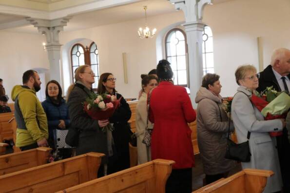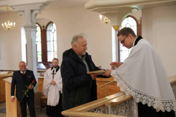 W dalszej części nabożeństwa ks. Piotr Sztwiertnia pobłogosławił każdego z chórzystów oraz przekazał wraz z kuratorem parafii Adamem Sztwiertnią i ks. Damianem Rusinem pamiątkowy dyplom wraz z upominkiem i różą. Gromkimi brawami oraz bukietami kwiatów podziękowano długoletniej dyrygentce chóru Annie Stanieczek, a także obecnej dyrygentce Izabeli Michalik.