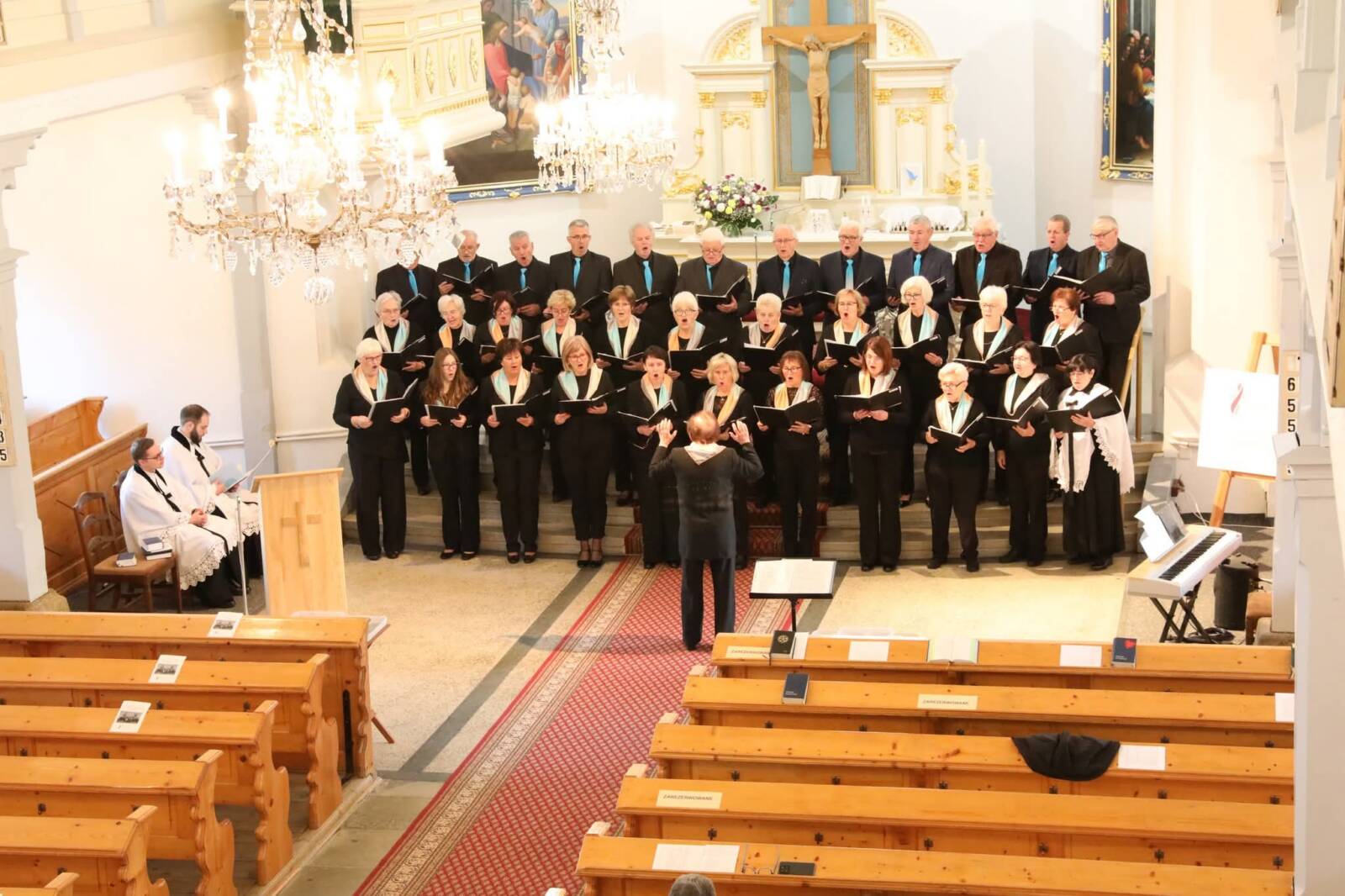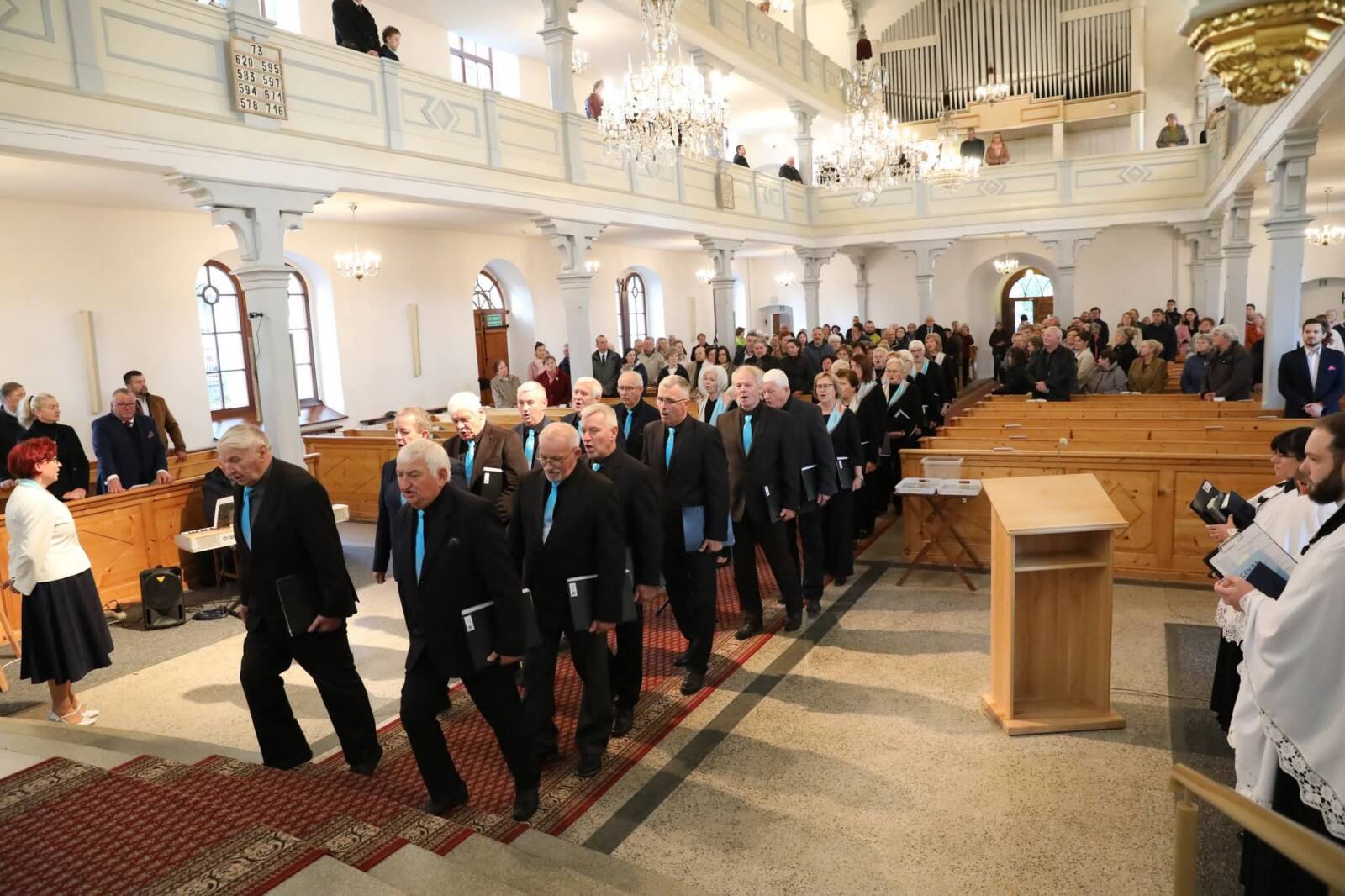Chórzyści weszli do kościoła z pieśnią „Będę śpiewał Tobie, mocy moja” na ustach. Podczas nabożeństwa wykonali w 4 blokach 12 pieśni, w akompaniamencie towarzyszył Janusz Fober. Każdej części towarzyszyły wspomnienia działalności chóru, które odczytywali ks. Bożena Zamarska i ks. Damian Rusin.