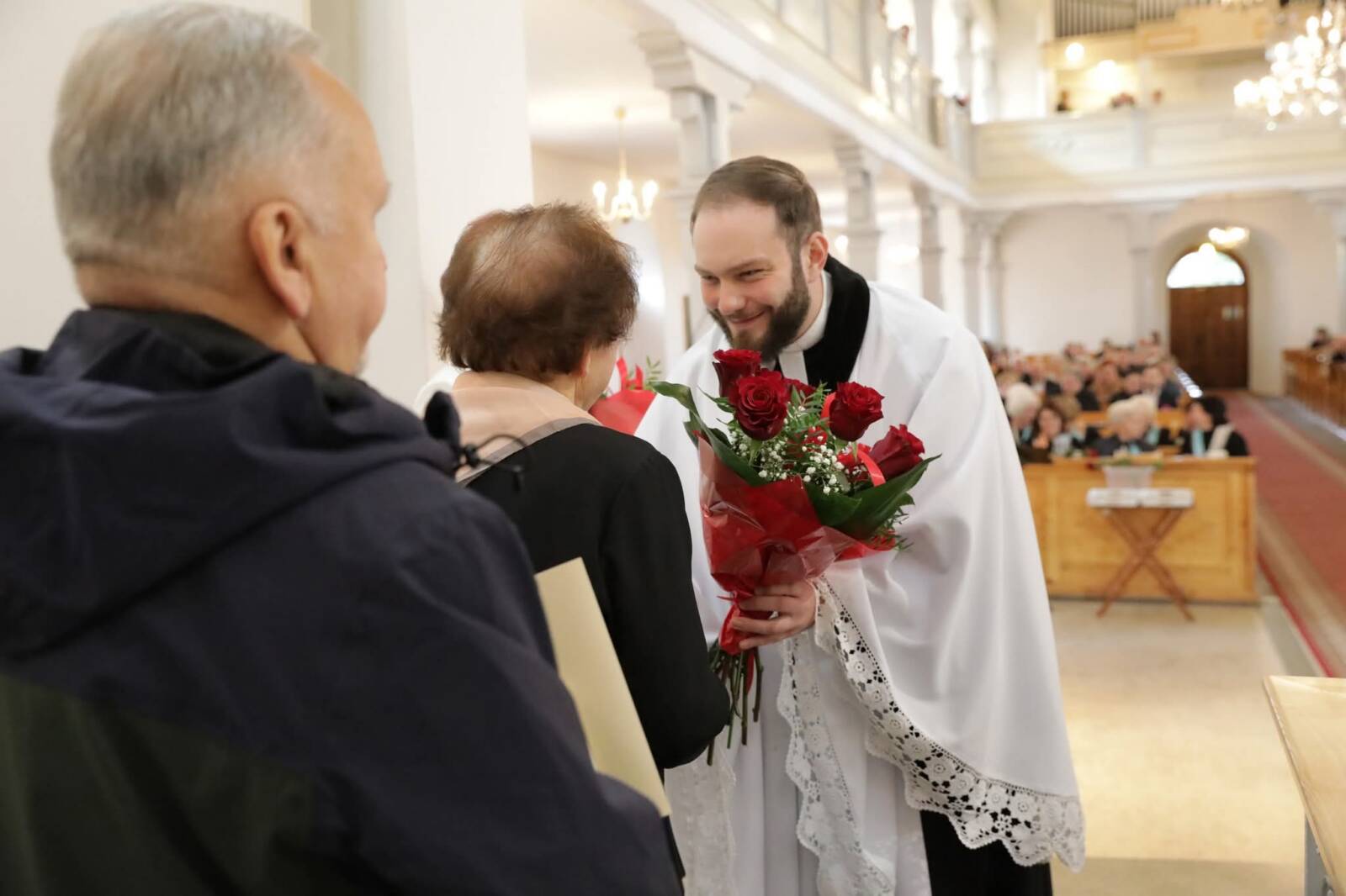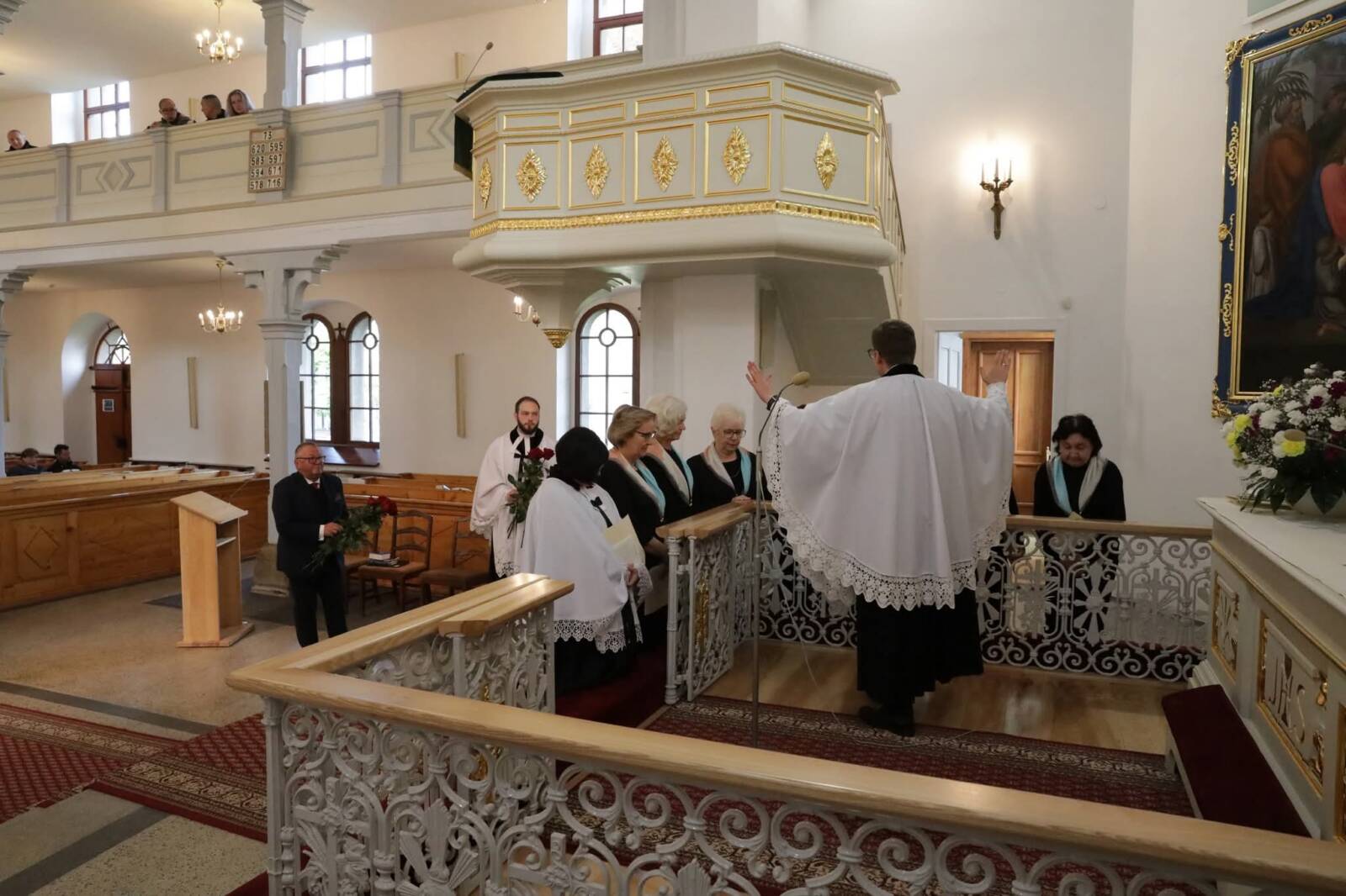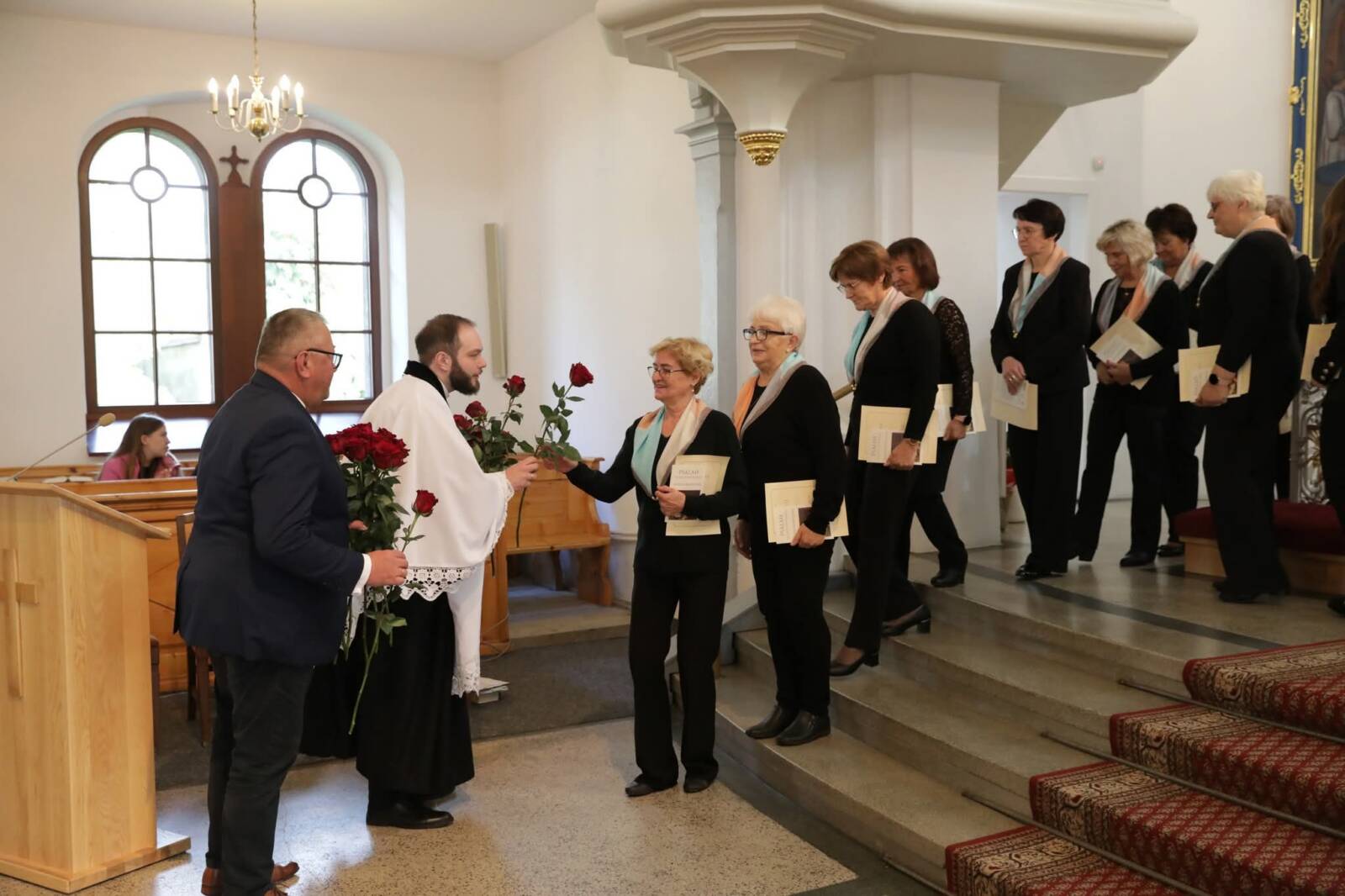 W dalszej części nabożeństwa ks. Piotr Sztwiertnia pobłogosławił każdego z chórzystów oraz przekazał wraz z kuratorem parafii Adamem Sztwiertnią i ks. Damianem Rusinem pamiątkowy dyplom wraz z upominkiem i różą. Gromkimi brawami oraz bukietami kwiatów podziękowano długoletniej dyrygentce chóru Annie Stanieczek, a także obecnej dyrygentce Izabeli Michalik.