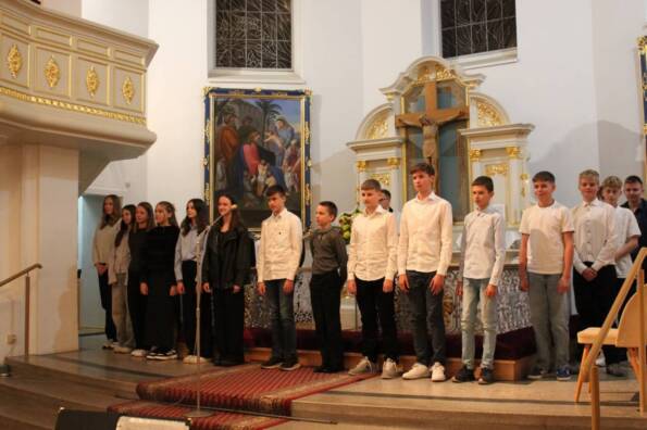 W trakcie nabożeństwa odbyło się również błogosławieństwo pierwszoklasistów oraz przedstawienie naszych tegorocznych konfirmantów. Pieśnią usłużył nam Chór żeński z Lesznej Górnej pod dyrekcją Jolanty Pecold.